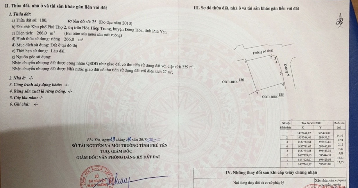 Lô đất thuộc Khu phố Phước Lâm, Phường Hòa Hiệp Bắc, Thị xã Đông Hòa.